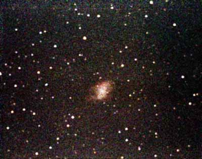 THIS VIEW SHOWS A TELESCOPIC VIEW OF THE CRAB NEBULA.