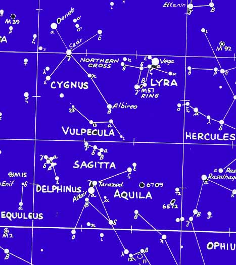 LEFT. TO THE UPPER RIGHT LOCATE THE STAR CLUSTER KNOWN AS THE
