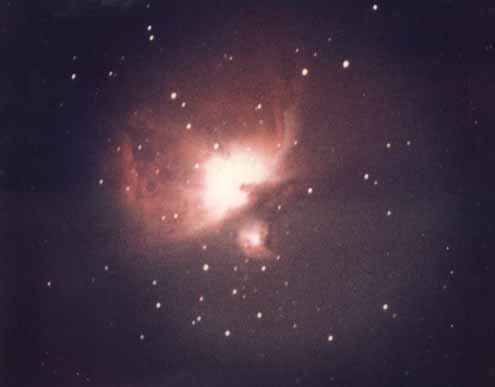 THE GREAT NEBULA IN ORION CELESTRON C8 F6.3 REDUCER PRIME FOCUS ABOUT FIVE MINUTES SCOTCHROME 400 SLIDE FILM