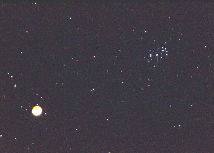 LUNAR ECLIPSE NOVEMBER 1993. PLEIADES IS AT UPPER RIGHT